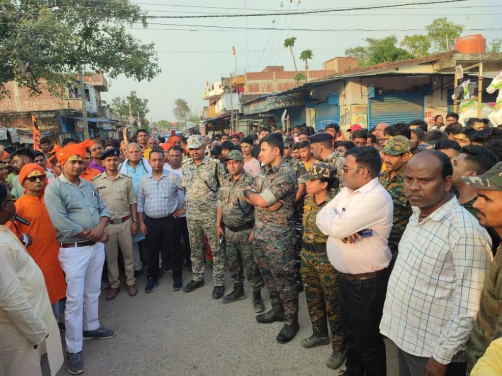 पलामू : चैत्र नवरात्र के अवसर पर हुसैनाबाद अनुमंडल क्षेत्र के ग्रामीण एवं शहरी क्षेत्र महावीरी पताखा से सज गया है, जिससे पूरा क्षेत्र राममय हो गया। हुसैनाबाद अनुमंडल क्षेत्र के दंगवार ओपी क्षेत्र में रामनवमी जुलूस धूम धाम से निकाली गई। इसे लेकर संपूर्ण दंगवार क्षेत्र महावीरी पताकों से सज गया। बड़े-बड़े महाबीरी झंडा से पूरा क्षेत्र राममय हो गया है। जय जय श्री राम के उद्घोष से आस पास का क्षेत्र गूंजता रहा।दंगवार के बस स्टैंड चौक, मुख्य बाज़ार रोड,सूर्यमंदिर आदि जगहों पर समिति द्वारा महाबीरी झंडा लगाया गया। विभिन्न अखाड़ा समिति के सौजन्य से पारंपरिक लाठी,डंडा, तलवार चलाकर एक से एक कला दिखाया गया।जुलूस के दौरान विभिन्न अखाड़ा समिति द्वारा पारंपरिक अस्त्र शस्त्र का परिचालन, झांकियों व महाबीरी झंडा का प्रदर्शन किया गया। लाठी,डंडे और तलवार से बेहतर खेल का प्रदर्शन करने वाले को रामनवमी पूजा समिति दंगवार के द्वारा पुरस्कृत कर सम्मानित किया गया। वहीं सुरक्षा व्यवस्था को लेकर हुसैनाबाद प्रखण्ड विकास पदाधिकारी सुनील वर्मा,अंचलाधिकारी पंकज कुमार, मुखिया अमरेंद्र ठाकुर, संतोष राम, दीपक कुमार गुप्ता, आजाद अंसारी,इंस्पेक्टर सह हुसैनाबाद थाना प्रभारी सोनू कुमार चौधरी,हुसैनाबाद अंचल पुलिस निरीक्षक सुरेश मंडल, बाल संरक्षण सह महिला थाना प्रभारी पार्वती कुमारी,दंगवार ओपी प्रभारी सोनू कुमार दल बल के साथ मौजूद रहे।