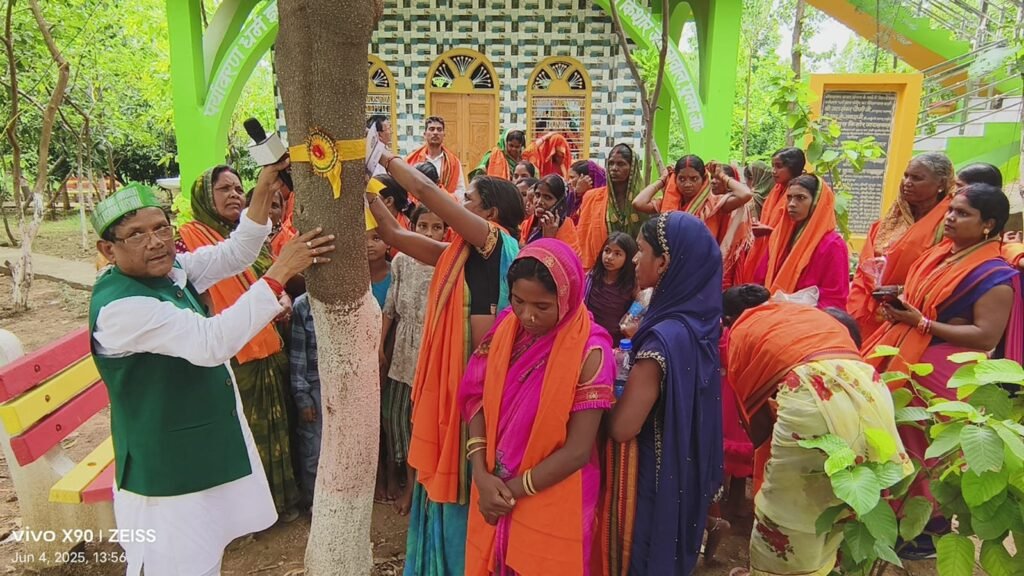 वन राखी मूवमेंट के अगुआ डॉ कौशल किशोर ने वन बचाने वाले सभी पर्यावरण प्रेमी महिलाओं को अंग वस्त्र , मिठाइयां,और फलदार पौधा देकर उन्हें सम्मानित किया ।